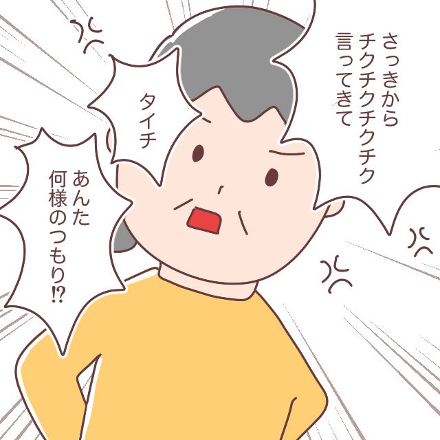 そして、「さっきからチクチクチクチク言ってきて、タイチ、あんた何様のつもり!?と夫に向かって言いました。