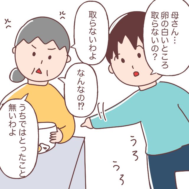 「卵の白いところ、うちではとったこと無いわよ」絡む夫に義母キレる