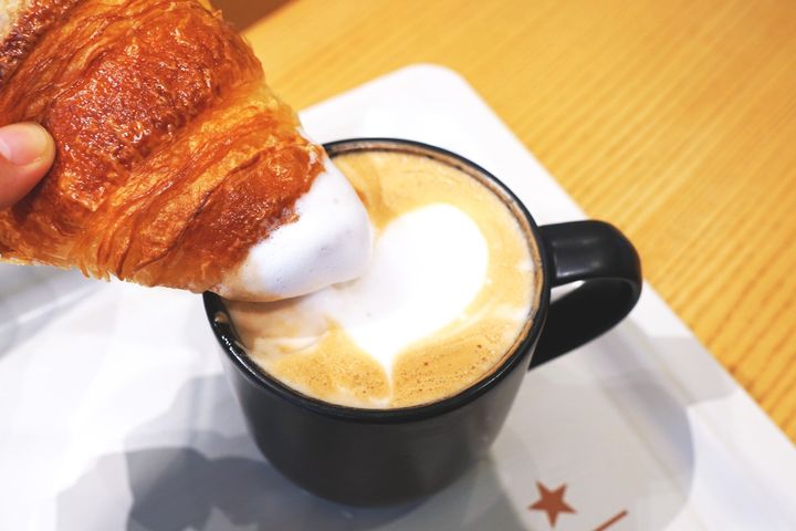 そんな「コルネッティ」を、店舗限定「クラシックダブルトールラテ」に浸していただきました!