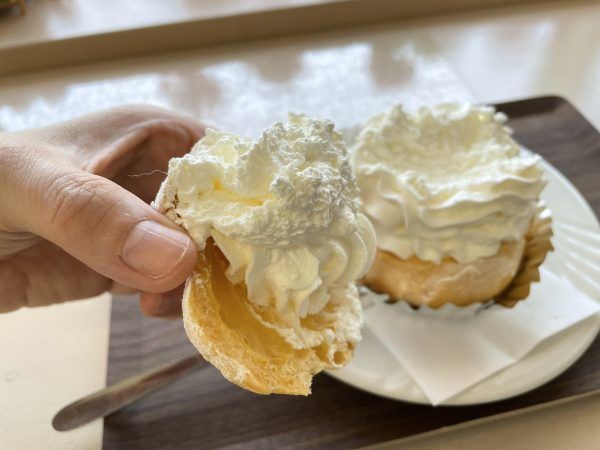 シュークリームを横から見るとよーく分かりますよね。生クリームがもりもりです。