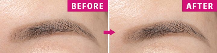 ムラにならず、発色がピタッとフィックスしている。眉尻までフォルムがキープされている。