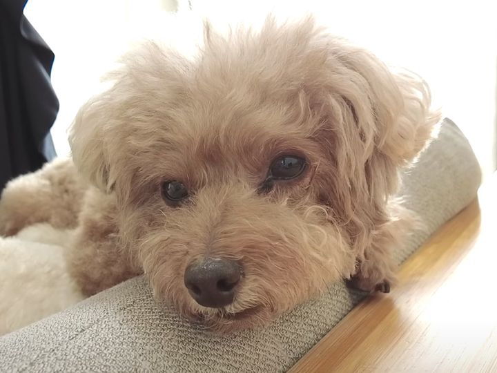 3. ママの足元にぴったり寄り添うトイプードルさん、終始甘えん坊モードで幸せそう