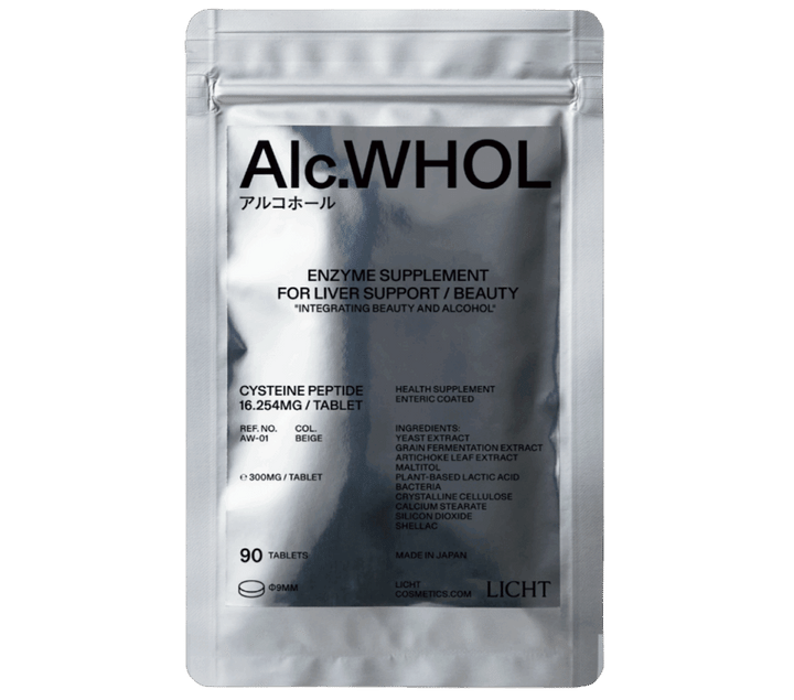 肝臓を助けるアーティチョーク葉エキスや米由来の植物性乳酸菌もIN。アルコホール(ブラックラベル)グルタチオン含有酵母エキスサプリメント 90粒 ¥5,800(LICHT)