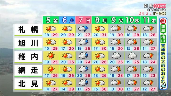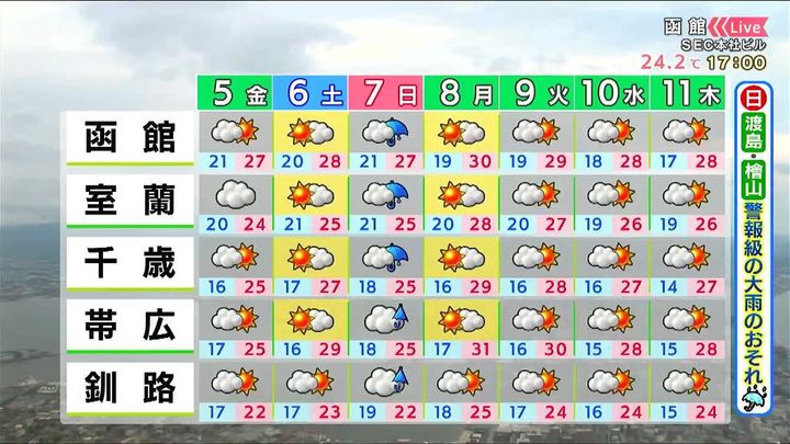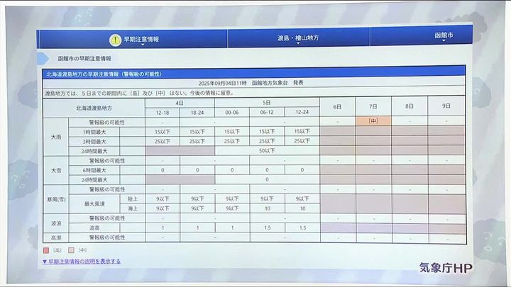 3. 【大雨のおそれ】日曜に道南を中心に…札幌でも雨や風が強まる 北海道の週間天気予報&気象予報士解説/2025年9月4日更新