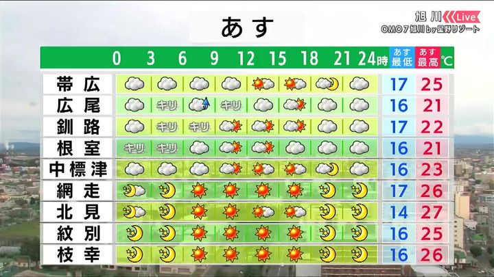 ・あすの札幌の朝昼晩の天気