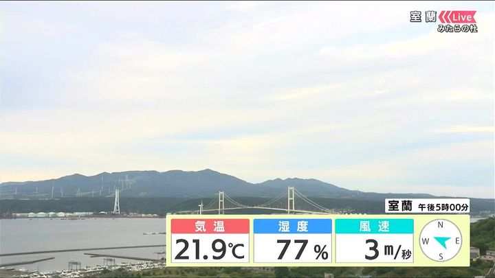 背景は4日午後5時ごろの室蘭情報カメラ