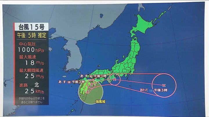 季節が秋へと向かっていますね。そして秋と言えば台風シーズンでもあります。きょう4日(木)午前3時に発生した台風15号。午後5時の推定で宮崎県の東海上にあり、あす5日(金)にかけて本州方面を横断しそうです。台風が近づく前から本州は大雨になっています。本州に行かれる方は交通情報を確認して下さい。北海道への直接の影響はないですが、湿った空気が流れ込むため、あすは太平洋側で雲が広がります。