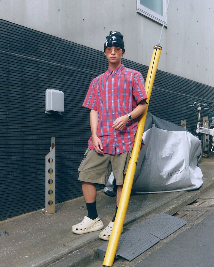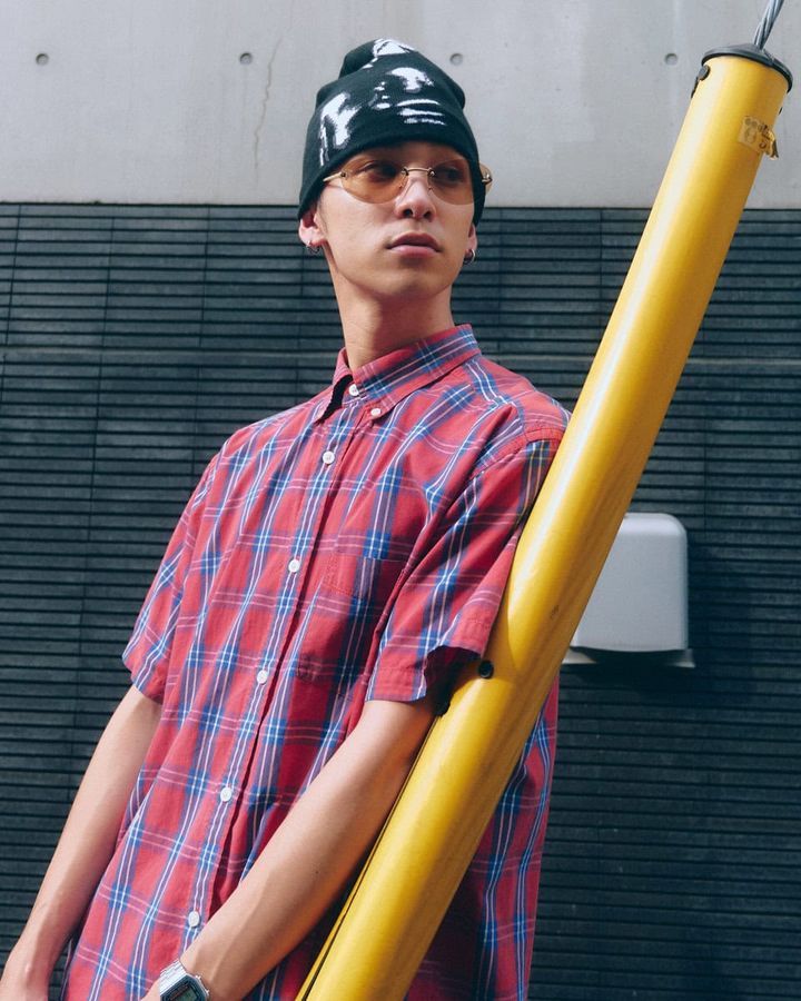 3. 【スナップ】上まできっちりシャツのボタンを留めて真面目に…ではなくハズしはビーニーで