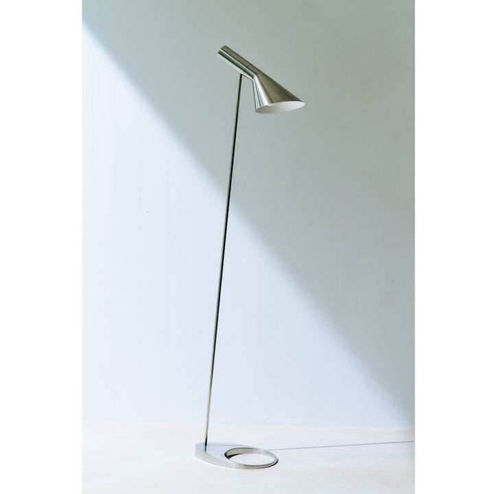 建築家アルネ・ヤコブセンがデザインした代表的なフロアライト。直線的でシャープなスチールシェードが知的な佇まい。リビングや寝室に置くだけで洗練された空間に格上げしてくれる唯一無二の存在感。AJフロア〈H130×W27.5cm〉¥226,600(Louis Poulsen/ルイスポールセンストア東京|大阪)