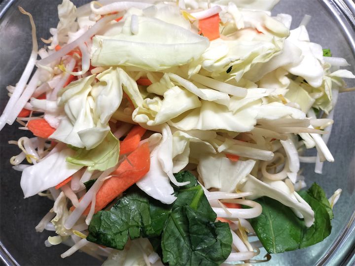 もやしまたは炒め用カット野菜...200~250g(もやしやキャベツがメインのカット野菜がおススメ)
