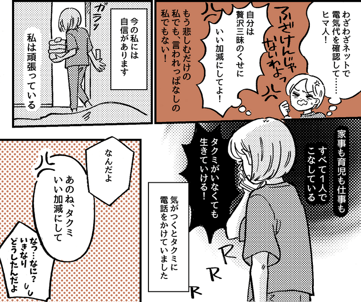 「自分は贅沢三昧のくせに」と思いながらも、「応援してくれる人がいる。タクミがいなくても生きていける!」と自信をもった私。
