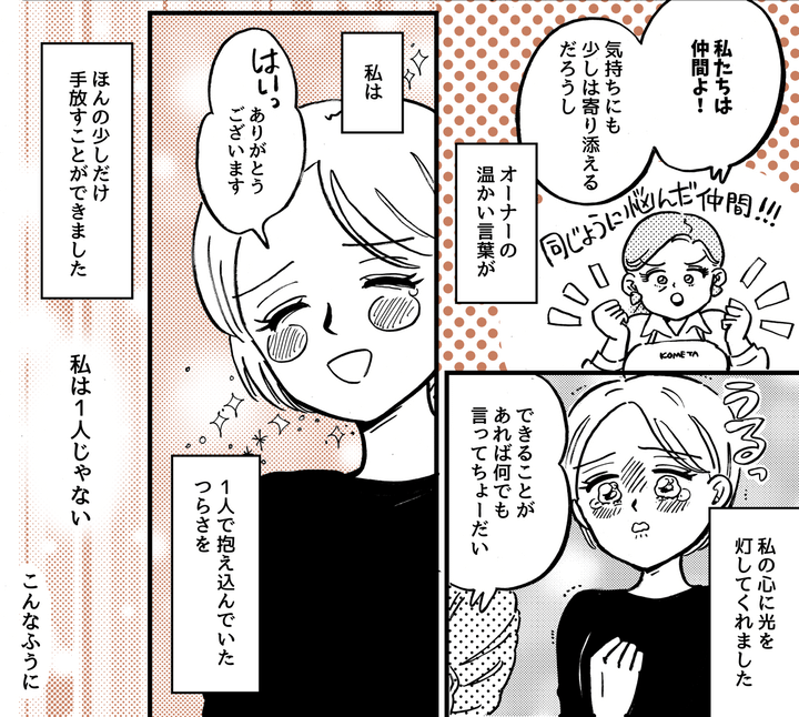 オーナー自身も同じような経験をしていたと知ってびっくり。
