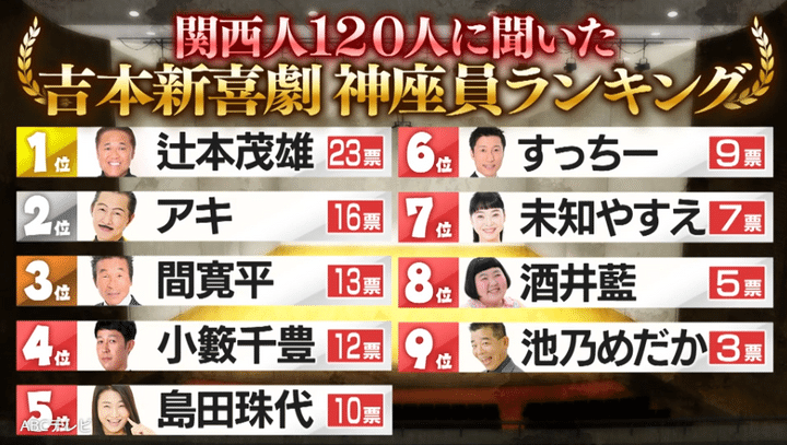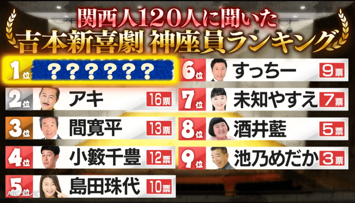なお、吉本新喜劇“神”座員ランキングは、9月3日に放送されたバラエティ番組『これ余談なんですけど・・・』で発表された。