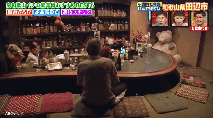 田辺市民たちが岡村に通って欲し過ぎる店とは、JR紀伊田辺駅の近くにある創業約50年の「スナックルージュ」。田辺市イチの老舗で、靴を脱いで上がる掘りごたつスタイルのこだわりスナックだ。田辺っ子たちいわく、「ルージュのママって言ったら有名人で、男性方はみなさん行っている」「レジェンド。ぜひ瓶ビールを飲んで欲しい」とのこと。