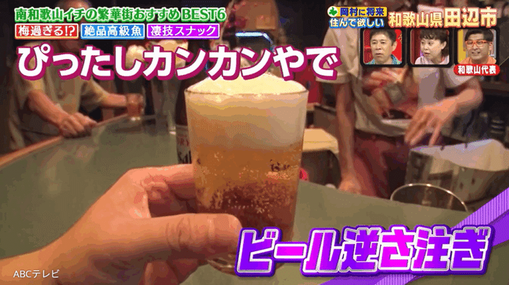 インパクト抜群なビール逆さ注ぎに、岡村らスタジオ一同は大ウケ! 「神業!」「素晴らしい!」「これは誰もできない!」「変わって欲しくないな~このスタイル!」「泡が絶妙や!」といった声が上がった。