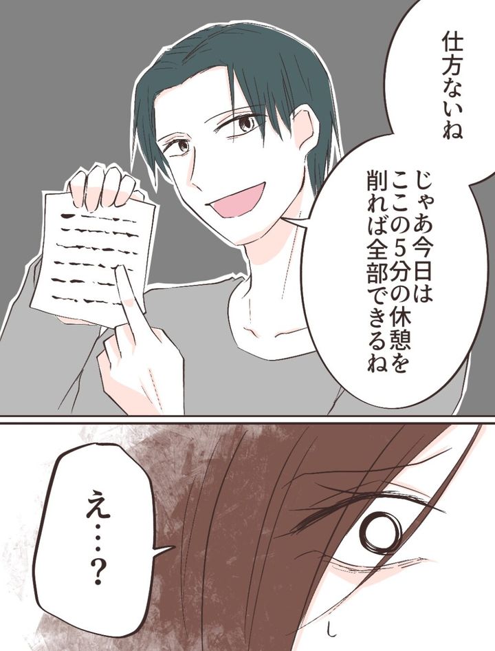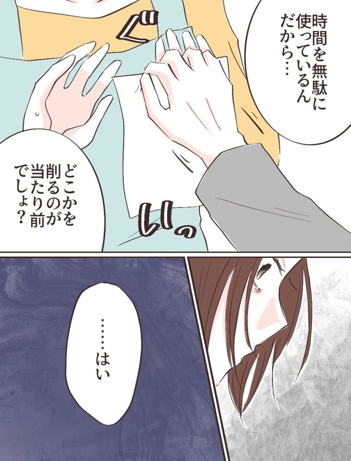 タスクはキツくてこなせないと言うハズキさんに、「時間を無駄に使っているんだから、どこかを削るのが当たり前」と冷たく言い放った後、「もうすぐ生理が始まる??」と言い出したリヒトさん、息苦しいというか、気持ち悪さを感じてしまいますよね。