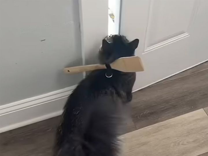 3. 新しいおしゃれ? 猫さんが「しゃもじ」を背負っている理由にびっくり!