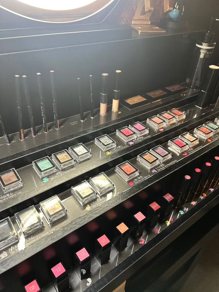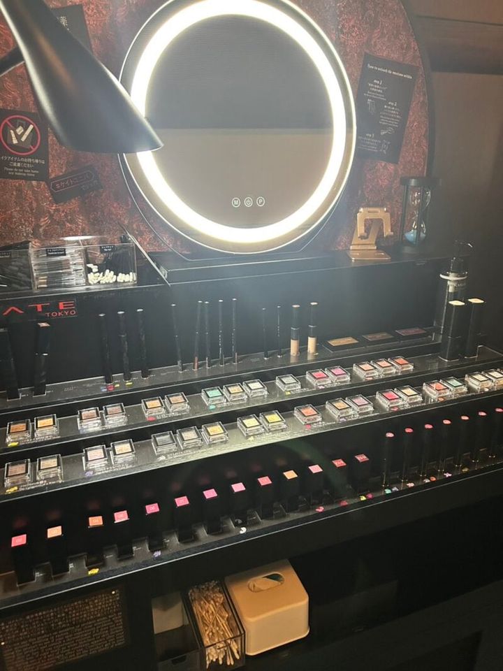 魔女に処方されたメイクを実際に体験するために、セルフメイクルームへ案内されます。そこには大きな鏡とともに「KATE」のコスメがずらりと並んでいるんです!そう、ここでは実際にコスメのタッチアップができちゃうんです。早速、QRコードで読み込んだ診断結果を参考に、おすすめのコスメやメイクアップ方法を自分の顔で試してみました。おすすめされた「ザ アイカラー」のM103 パンプキンムースは、自分ではあまり手に取らないような色でしたが、試してみると「意外と私、オレンジ系似合うかも♡」と心がときめく瞬間がありました。