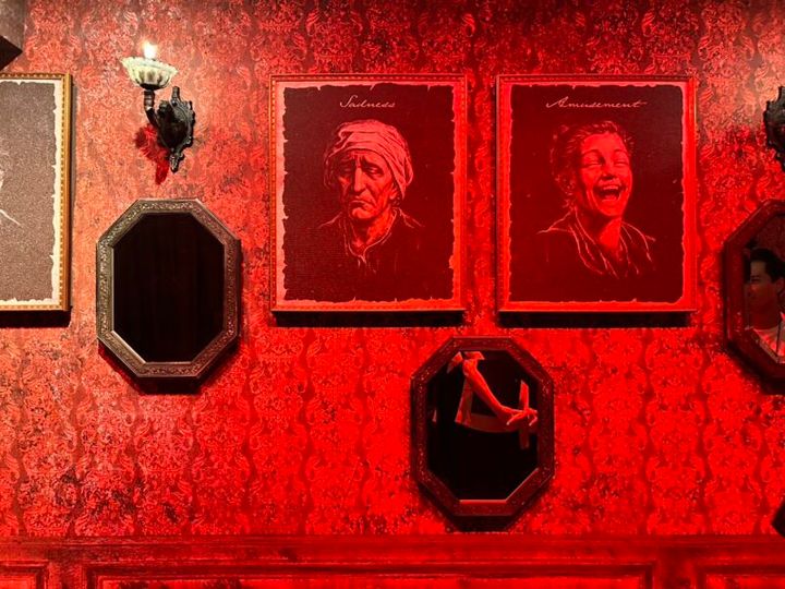 館の中へ案内され、まず目に飛び込んでくるのは、感情を司る魔女の肖像画。次に、人間の喜怒哀楽を表した肖像画を見ながら、魔女に課された“感情の試練”へと案内されます。鏡の前で喜怒哀楽の表情を見せるというこの試練、少し恥ずかしいかもしれませんが、ぜひチャレンジしてみてください。