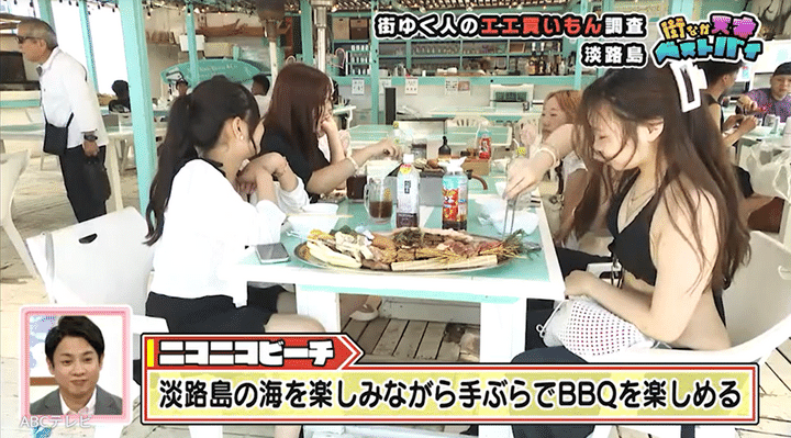天才ピアニストが最初に訪れたのは、淡路市室津にあるニコニコビーチ。海水浴はもちろん、美しい海を眺めながら手ぶらでBBQができるほか、フォトスポットでSNS映え間違いなしの写真を撮ることもできます。