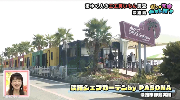 絶景のビーチを満喫した天才ピアニストは、少し北に移動し、オーシャンビューとカラフルなコンテナが目を引く「淡路シェフガーデン」へ。ここには、淡路産食材のグルメが味わえる飲食店が30店舗も揃っています。