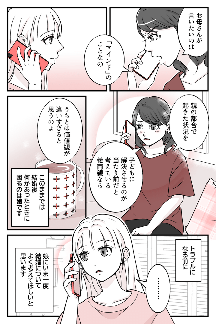 娘は優しく世間知らずな一面があるため、母親の私がしっかり将来起こりうる苦労を伝えておかなければいけないと思いました。娘にこの状況を見極めてほしいのです。