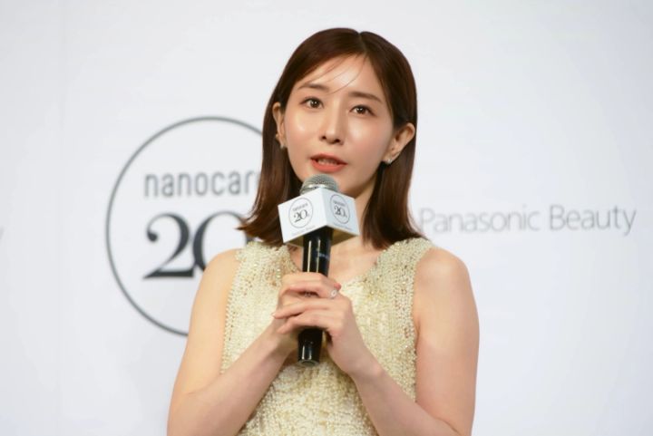 この日は繊細なビジューをふんだんに使ったクリーム色のノースリーブドレスで登場したみな実さん。初期からのナノケア愛用者だそうで、学生時代はお父さんを説得して買ってもらったという微笑ましいエピソードを披露していました。