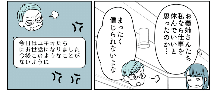 義姉は義兄に、義母は義父に怒られました。しかし2人は反省するどころか、私に責任を押しつけるようなことを言ってきたのです。