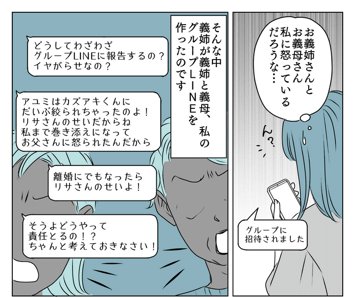 「義姉と義母はきっと私に怒っているだろうな……」と思っていると、義姉がわざわざ義姉と義母、私のグループLINEを作って文句を言ってきました。