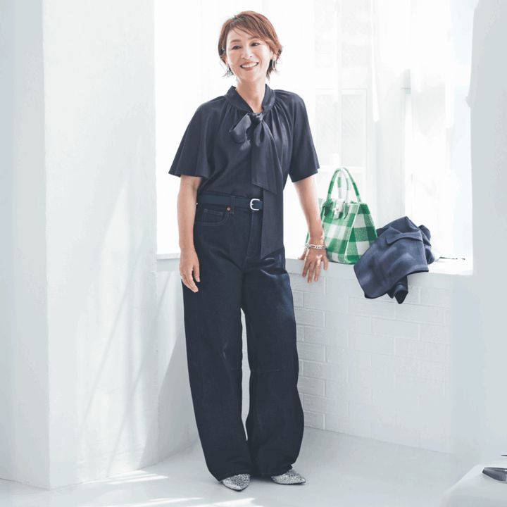 【60代デニム】低身長でもトレンドの太めシルエットパンツを着こなせる?スタイリストMaikoさんのアドバイスでさらに洗練されたスタイルに!