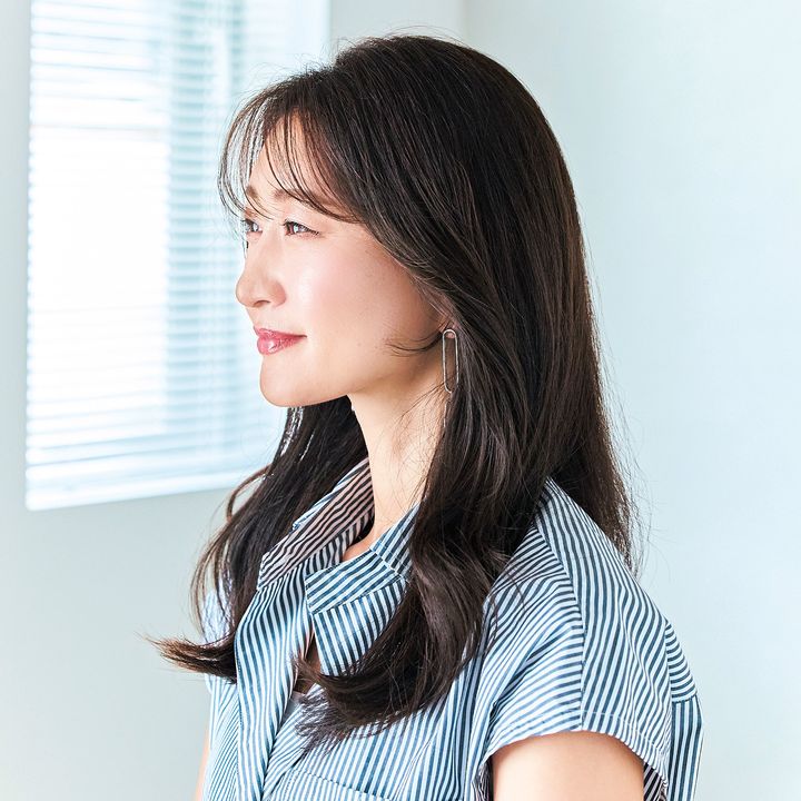 「前髪をかき上げるのがいい女の象徴でしたが、美ST世代にとって生え際はウィークポイントなので、隠すのがいちばん! 流行りの透けバングは少し切るだけで完成するので、初心者でも抵抗なく試せるはず。おでこが隠れる分、顔も小さく見えるいいことずくめの前髪です」