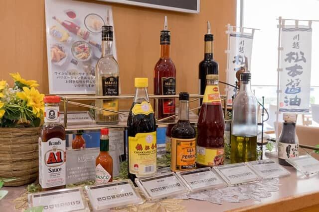プラスアルファでさらに多彩な味を楽しめるソースバーも新発想。本場イギリス・ウスター地方の「リーペリン ウスターソース」や、沖縄のステーキハウスの必需品でイギリス製の「 A1ソース」、中国の黒酢「鎮江香酢」、川越の松本醤油が造る「はつかり醤油」などをそろえ、料理にアクセントを添えられます。