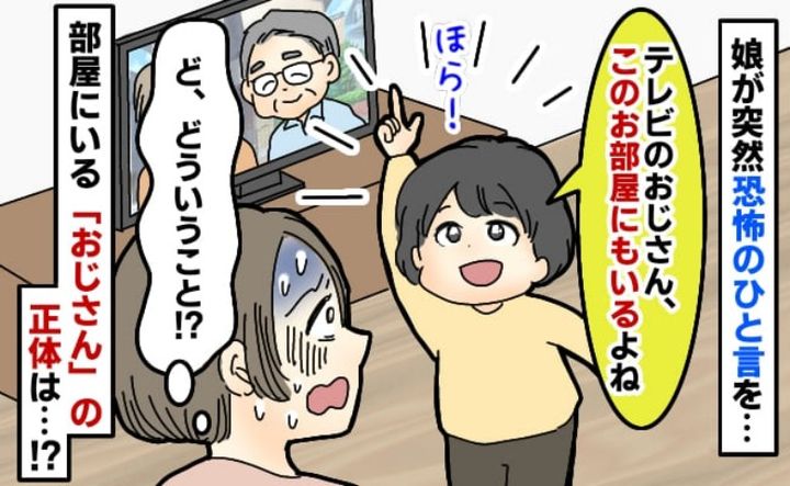 テレビに映る60代後半くらいの俳優の男性を指さしながら、「このおじさんだぁれ?」と聞いてきたと思ったら、娘は続けて「ここにいるおじさんと一緒だね」と衝撃の言葉を口にします。 びっくりして「家の中にこのおじさんがいるの!?」と聞くと、娘は自分の頭の上を指さして「ここ」と言うのです。