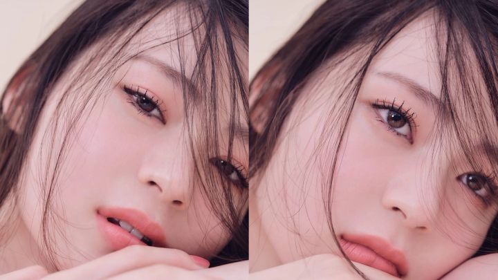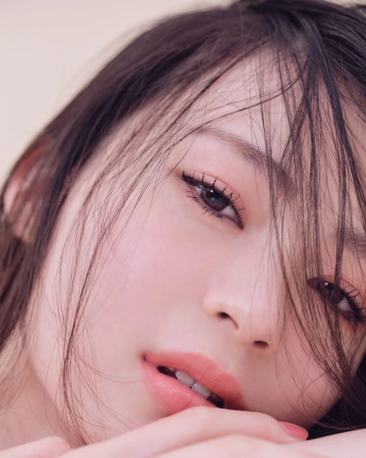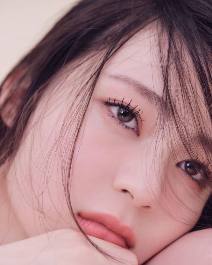 強さとあざと可愛さを両立したピンクメイクの完成。技ありアイシャドウでさりげない目力をアピールして。