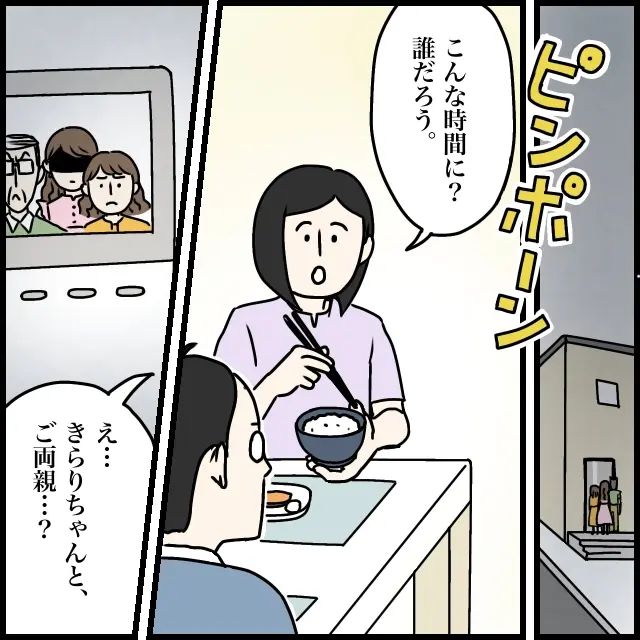 ピンポーンとインターホンの音がして、「こんな時間に?誰だろう」食事中だった私たちはインターホンの画面を覗きこみました。