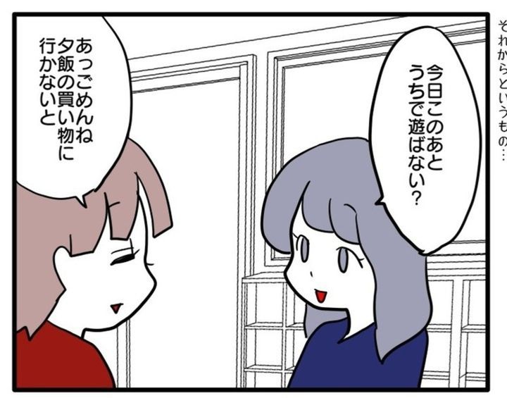 ナナちゃんママはジロウくんママの圧に根負けし、一度自宅に呼んだことがありますが、そこでのジロウくんママの「何でもかんでも詮索するような言動」にげっそり。それからはジロウくんママの「遊ぼう」の誘いもほとんど断る日々を過ごしていました。