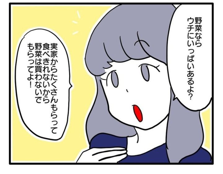 ナナちゃんママの困惑する様子を一切意に介さず、自分の希望を通そうとするジロウくんママ。何より、「野菜をおすそ分けするから」と言いつつ、おすそ分けの量はまさかおすそ分けとは言えないような量を渡すなど、ちょっと思考が読めませんね。