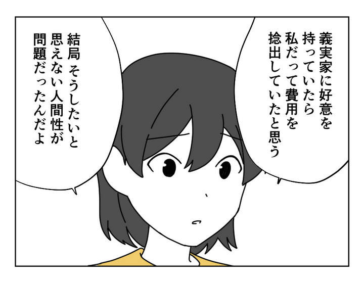 カオリさん(35)は、家族4人で暮らす小学生の男の子2人のママ。現在パート勤めで家計を支え、マイホームのための貯金をがんばっています。しかしある日、義姉から「末期ガンの母(義母)のために月1万円の援助をしてほしい」と連絡が。家庭内の経済状況に加えて義実家との関係を理由に、カオリさんは家計からの援助を拒否しました。納得しない義姉と揉めつつも、援助ははっきりと断り、義姉との関係は断絶となりました。