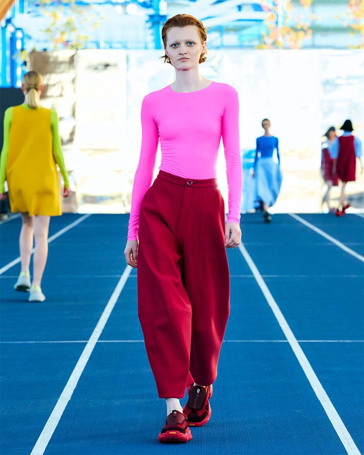 「水着の素材を採用したルックは、ミニマルなシルエットに鮮やかな色彩と立体的なディテールが映えます。今季は特にカラーバリエーションが豊富なので、ワントーンで統一したり、あえて色を重ねて楽しんだりと、自由にスタイリングをしてほしい」と植田は話す。