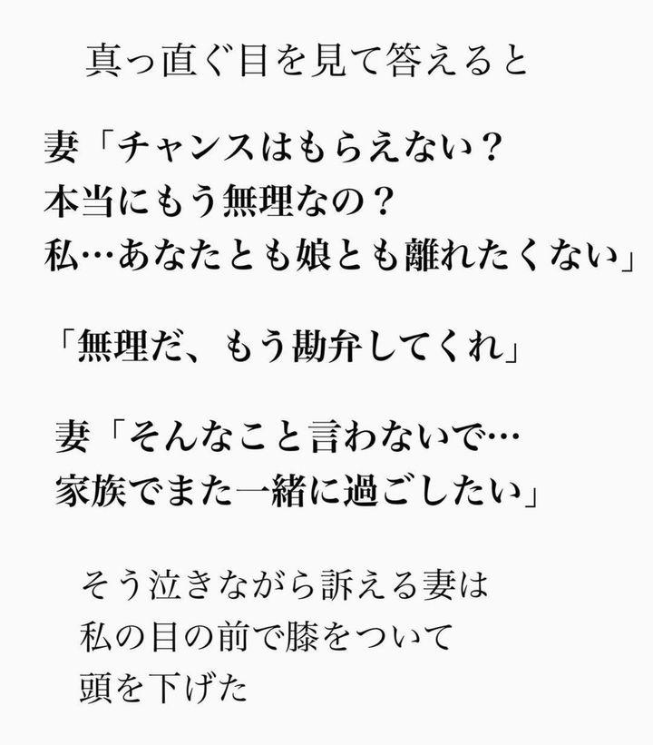 妻と再構築をするべきか悩んでいた太一さんでしたが、妻の行動を見て、この考えは一瞬にして吹き飛びました。