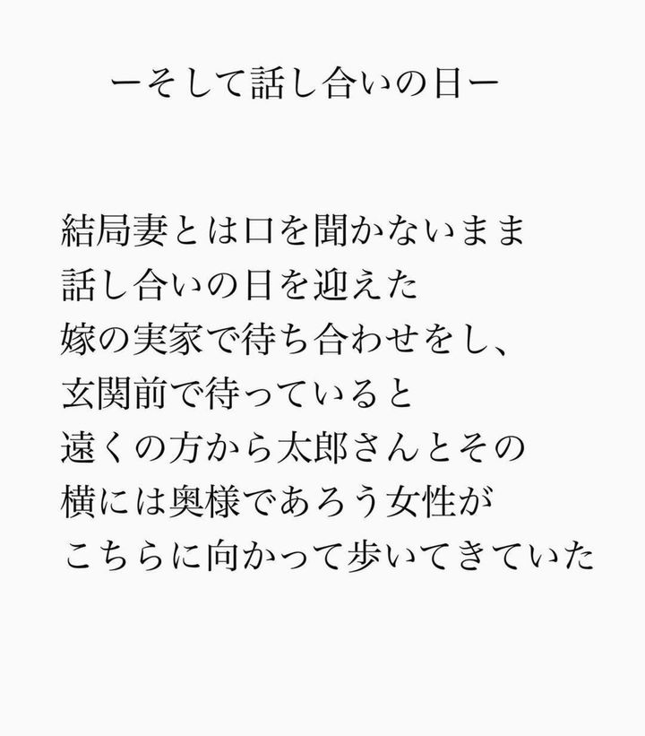 妻の不倫相手…太郎の妻は妊娠4か月。しかも、他にも3人も子どもがいるそう。子どもたちのためにも、太郎夫妻は再構築の道を決めたようです。