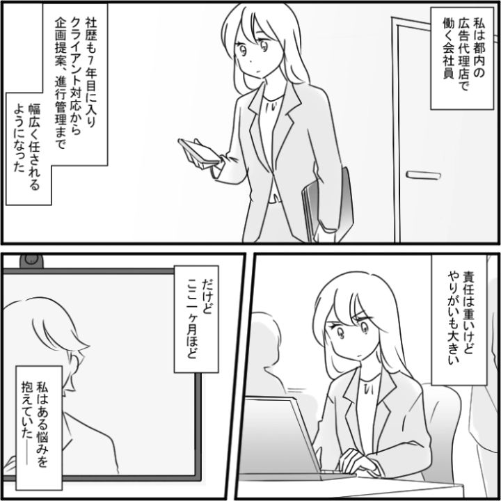 主人公は都内の広告代理店で働くアラサー女子。仕事は充実しているものの、最近ある悩みがあるようで・・・。