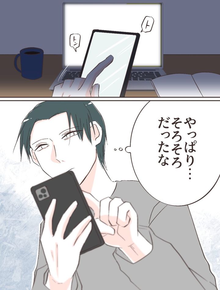 部屋に戻ったリヒトさんはスマホを見つめながら何やら計算をし、「やっぱり・・そろそろだったな」と呟きました。