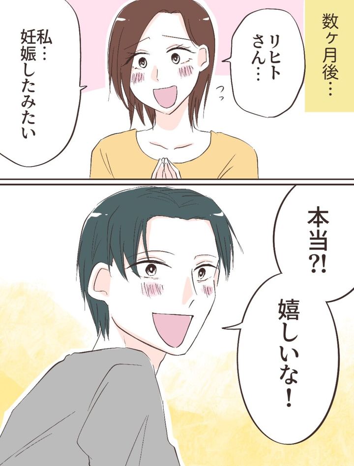 「リヒトさん・・私・・妊娠したみたい」と報告すると、「本当!?嬉しいな!」と笑顔で喜ぶリヒトさんがそこにいました。
