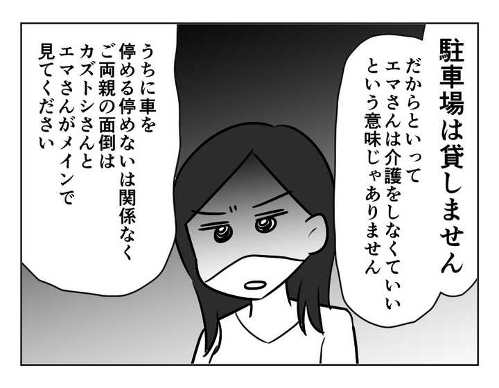 ヒカリさんは、自宅の敷地内に義妹エマさんが毎週車を停めるので困っていました。「もう停めないで」と言ったにもかかわらず、またやってきたエマさん。「停めさせてくれたら将来親の介護は私がするから」とピントのズレた提案をしてきて、まだ停め続けようとします。