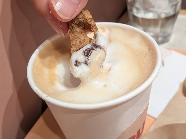 メニュー写真にあった「カフェラテにクッキーをドボン」する食べ方を試してみたいっしょ!ってことで、一緒に行った友人は、カフェラテ(640円)とボストンクッキー(420円)を注文。