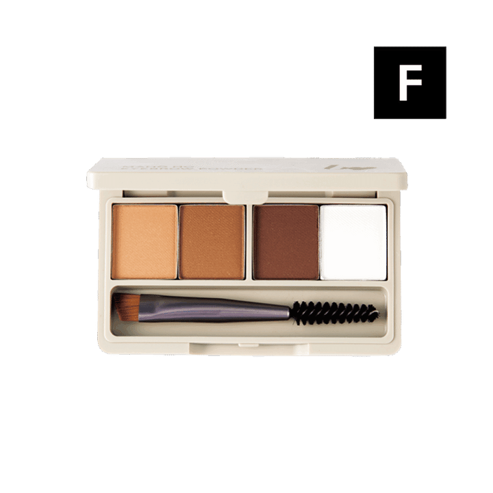 ベージュからブラウンの濃淡パウダーの他、落ちにくくするフィックスパウダーまで内蔵された眉パレット。眉はもちろんノーズシャドウにも優秀。ビー アイドル 魔法のアイブロウパウダー 01 ¥1,980(かならぼ)