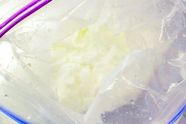 冷凍庫に入れずとも液体が5分で凍るなら、試してみる価値あり!さっそく、ヨーグルトドリンクを袋に入れて、シャカシャカ振ってみよう。