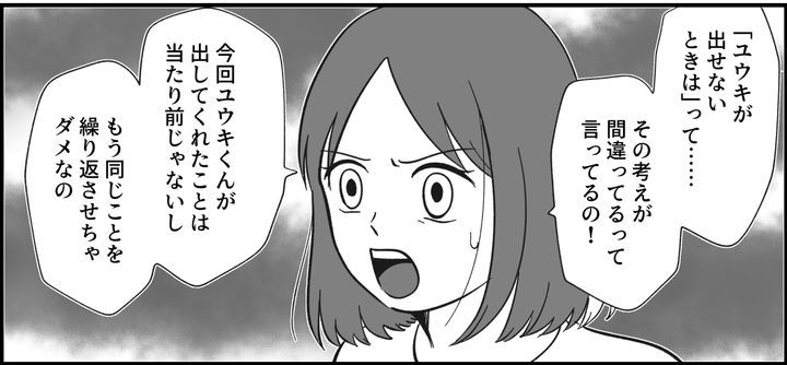 「今回ユウキくんが出してくれたことは当たり前じゃないし、もう同じことを繰り返させちゃダメなの! あなたまだ高校生でしょ? 今からそんなんでどうするの?」私が話を続けようとすると、またもや夫が話に入ってきました。