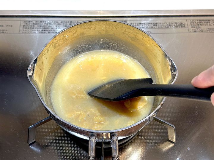 1. Aを鍋に入れて火にかけてかき混ぜながら練り、全体に火が通ったら火から下ろし冷ましておく。